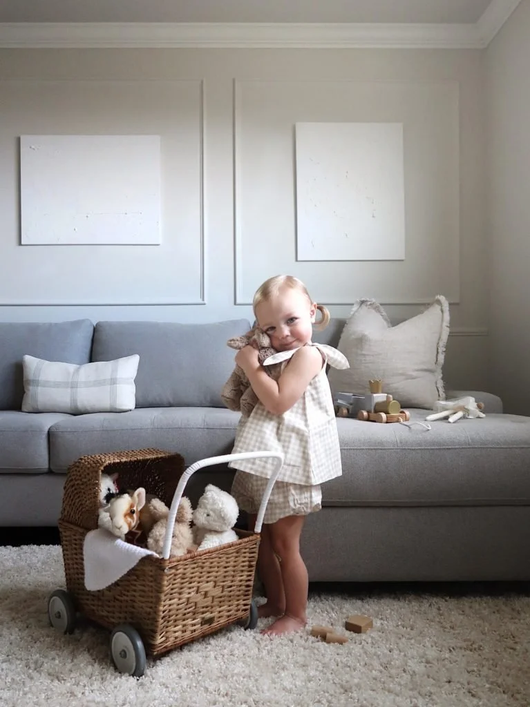 Ever since we moved into our quaint family home, I've longed to create a special space where we can play, laugh, and recharge together. A space that's not only practical and functional, but comfortable and stylish. One of the many things we loved about this house was the second, more casual living space. It's situated perfectly by Meriwether's bedroom, and serves as her primary play area. Since moving in, this part of the house has seen a lot of action, but it's been outfitted with a revolving door of random furniture we had from previous homes (none of which met our current needs). However, I'm happy to report we can finally put those days behind us (!!) I'm so proud to have worked with Thomasville to bring our vision to life, creating a space that completely caters to our life as a young family who values comfort, function and style.