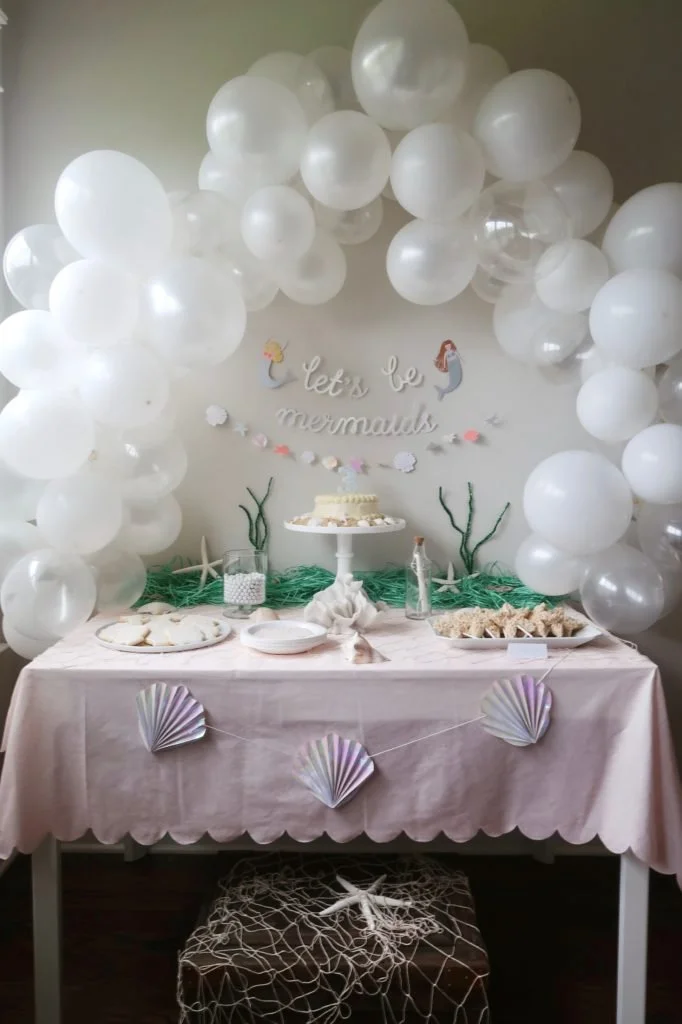 For her third birthday, she chose a seashell theme. I ran with the idea and sourced all the things to make her celebration special. Since everyone was in lockdown for her second birthday, I wanted to make her day extra fun. Grandmother sewed her a special outfit, complete with a mermaid in an underwater scene.